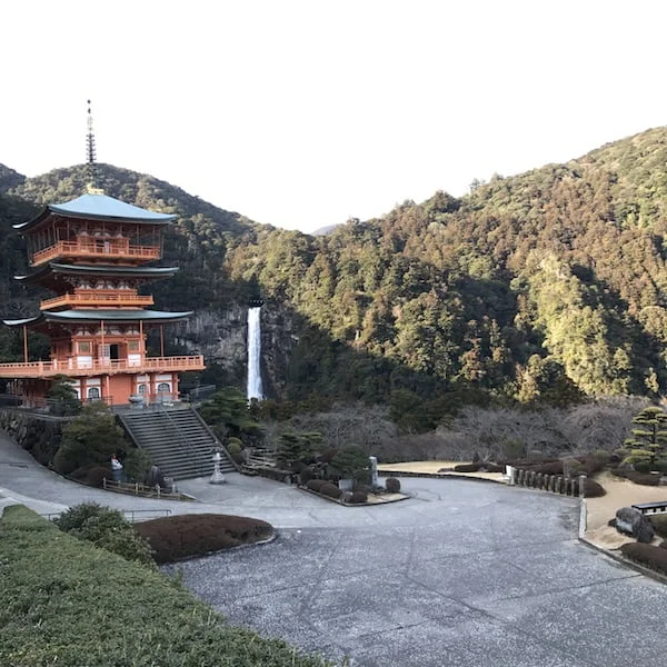 現存青岸渡寺的三重塔是於 1972 年重修的,從三重塔的 3 層瞭望台可眺望到那智瀑布的全貌。