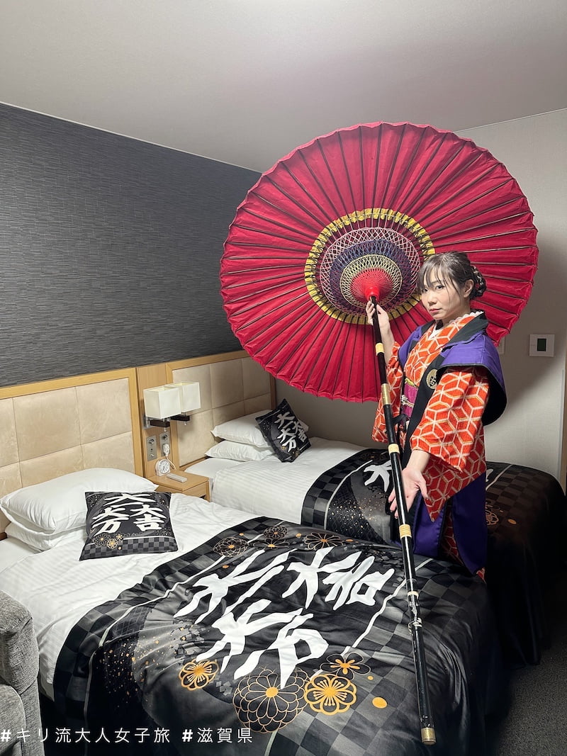 在彦根駅旁邊的Sun Route Hotel(サンルート彦根)捉住了大家喜歡石田三成的心理,在商務旅館竟然也搞起戰國主題房間。比起之前去過的福岡柳川立花闇千代、宗茂聖巡傳統旅館「御花」價格絕對便宜。