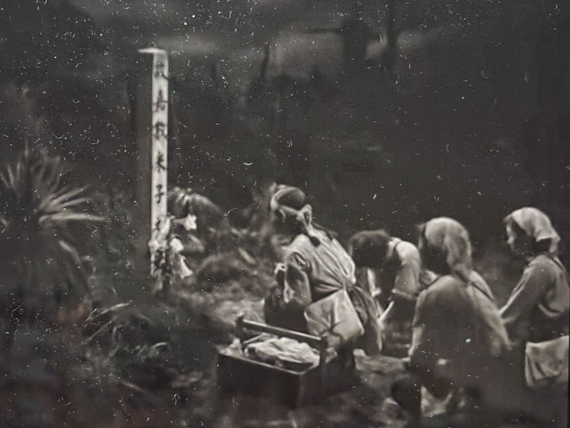 情況越來越嚴峻,在逃難的過程中有些女孩子被擊中倒地,同學們為她們建立墳墓並立上簡單的墓碑。