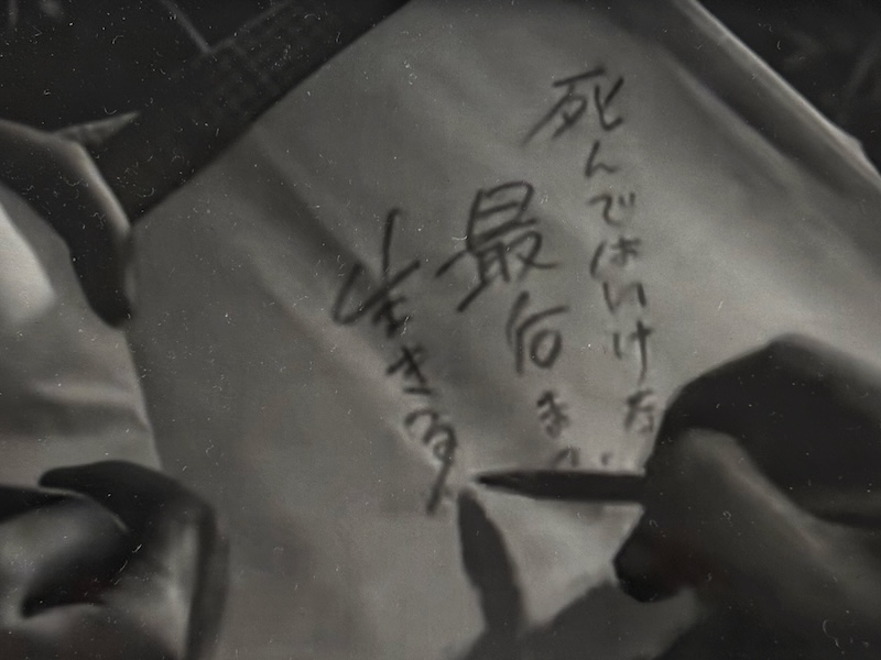 電影中,兩位老師一路照顧這些孩子們,看着學生們相繼倒下,內心的傷痛不言而喻。當男老師發現女老師耳朵已經聾了,在她的筆記簿上寫下鼓勵的說話⋯⋯