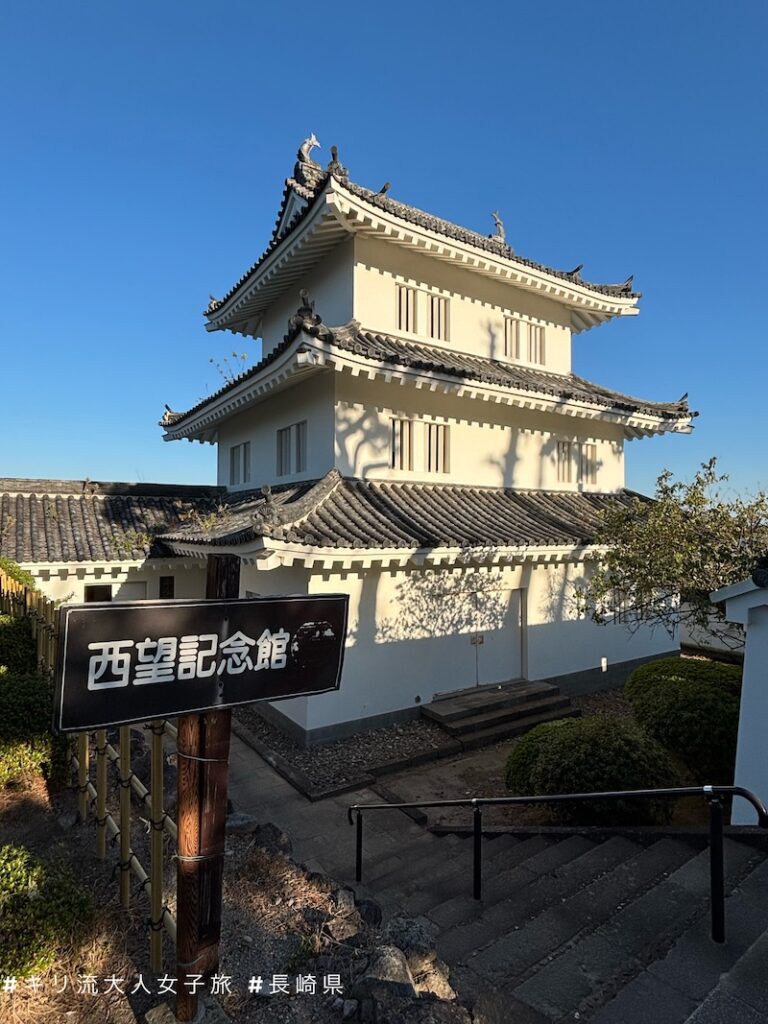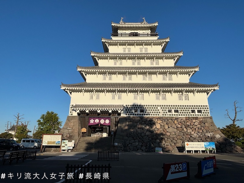 離開原城後馬不停蹄到達松倉家的島原城,這是混凝土建築的復原天守,去年2024年剛剛慶祝島原城築城400年。島原城天守顏色雪白,讓我聯想到天空白鷺之稱之姬路城;此天守妙在完全沒有破風,跟彦根城坐擁18個破風相比甚為「自信」,完全不懂得「虛張聲勢」?