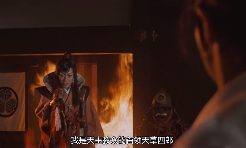 電影到最後關頭,被十兵衛斬去頭顱的天草四郎在烈火中留下了驚人的金句飄然遠去: