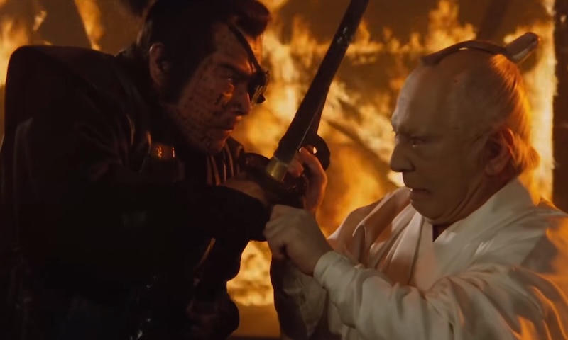 ① 實際燃燒拍攝的名場面:江戶城在火中燃燒的場面並不是特攝!這是真正建造的佈景,為了拍攝這個場景攝影所工作人員全部準備滅火器,消防車也在外待命;而且相機並不固定,而是鋪設軌道的移動拍攝。比起固定用長焦鏡頭,透過進入火焰中留下真實又驚心動魄的場面。