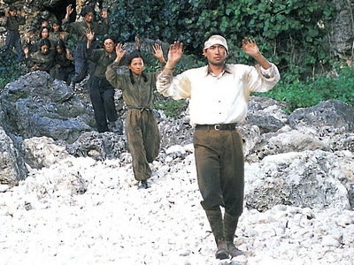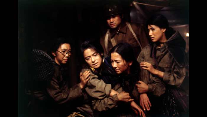或者跳崖的情節太過驚心動魄,無論是塞班島還是沖繩戰役,昭和電影都保留跳崖自盡的場面,踏入平成年代不久的1995年版本《姬百合之塔》經驗沒有跳崖的情節。但是女學生們與另一位心智比較薄弱、萬念俱灰的老師一起圍圈圈自殺的場面,依然保留下來了。