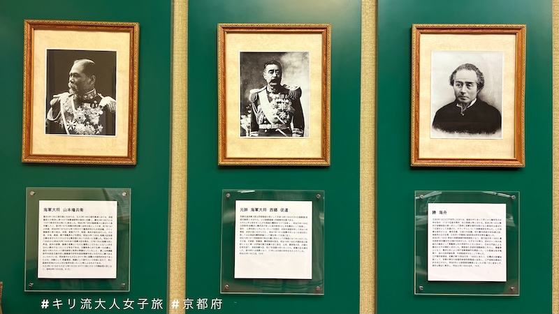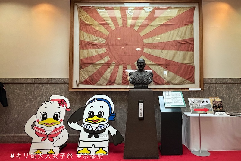 ① 海軍紀念館設於海上自衛隊舞鶴地方總監部內,東鄉平八郎的肩像就在玄關醒目處,迎接每一位到訪的來賓。由於建築物本身是舊海軍學校大禮堂,踏上老舊的木地板仰望禮台上懸掛的旗幟,如同走入歷史長河。