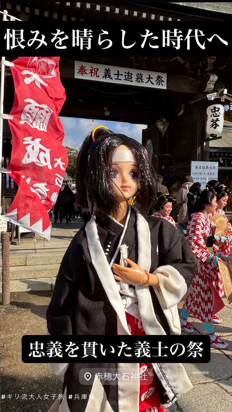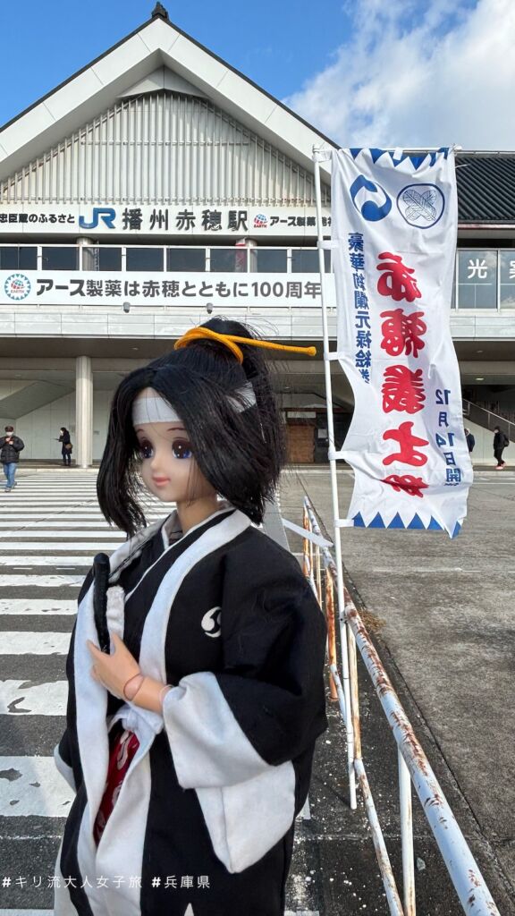 陪我千里迢迢香港飛關西再跑到赤穗的是日本玩具品牌TAKARA 2004年產的Jenny人形(赤穗義士造型Marine),這公仔已經跟了我21年。從沒想過會帶着赤穗義士公仔去赤穗,看來這緣份是命中注定的。
