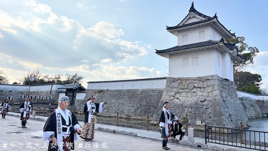 赤穂義士祭當日我在10點左右到逹赤穗駅,站外早就擠滿了來看熱鬧的民眾。跟着群眾一起走,來到日本百名城之一赤穗城稍為等候,便看到祭典的開幕儀式。