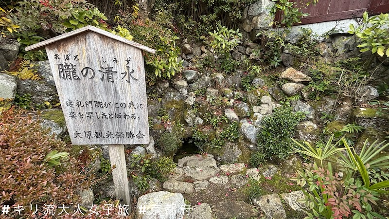 德子29歲在寂光院出家,人稱「建禮門院」。她在走到寂光寺前在一泉水湧出處照過容顏之地,今日稱為「朧之清水」。