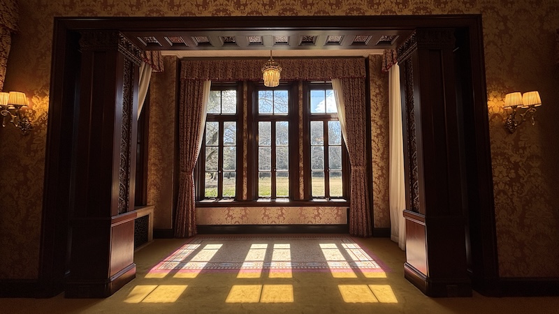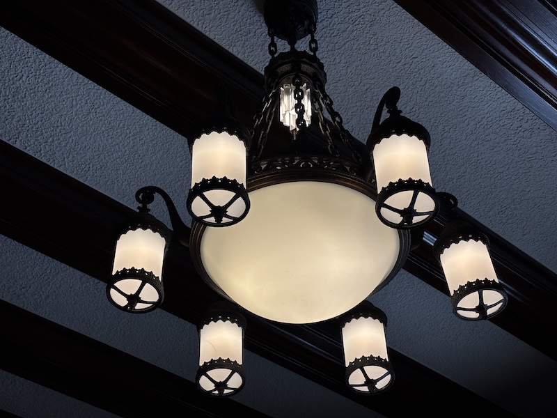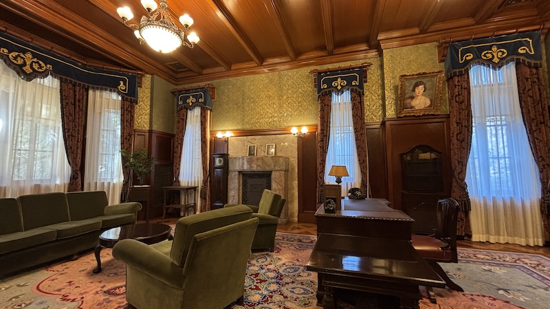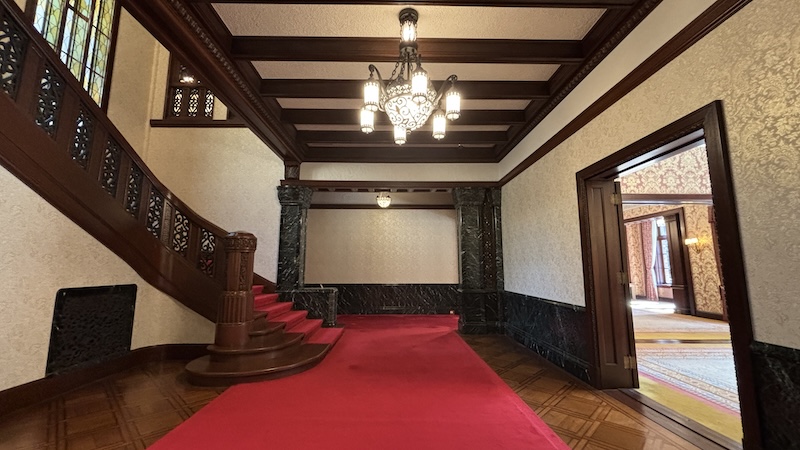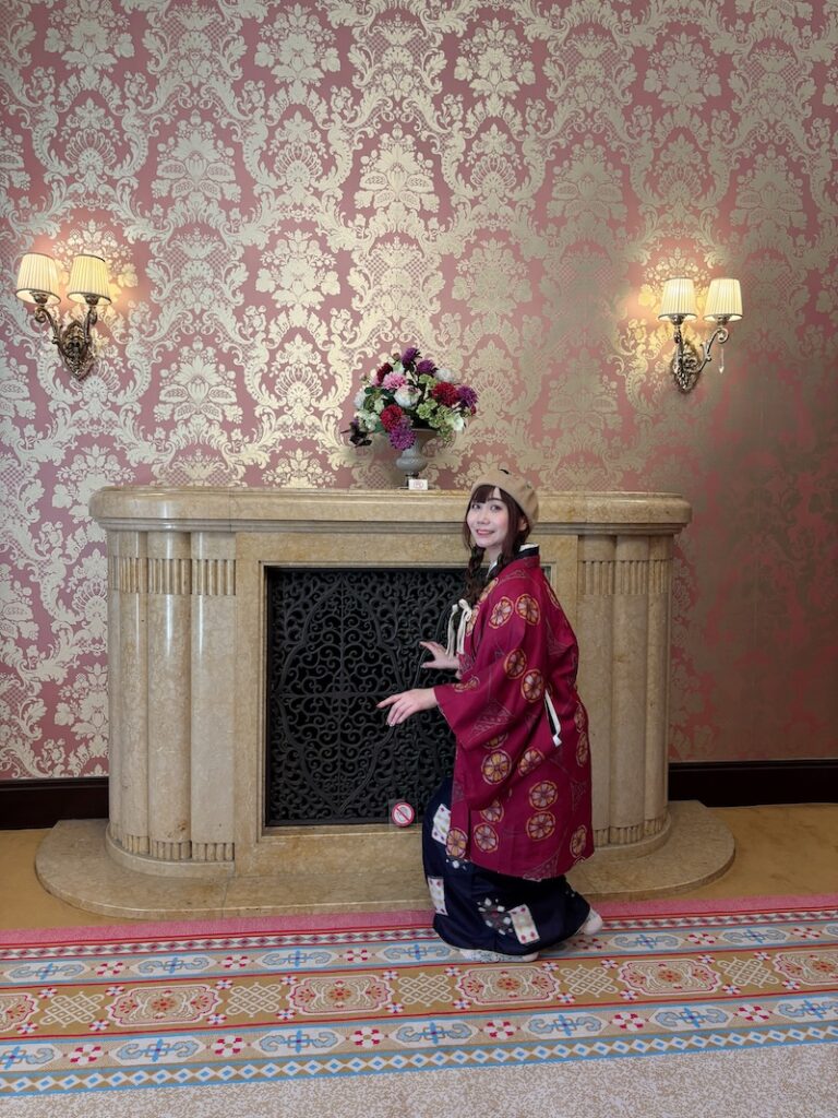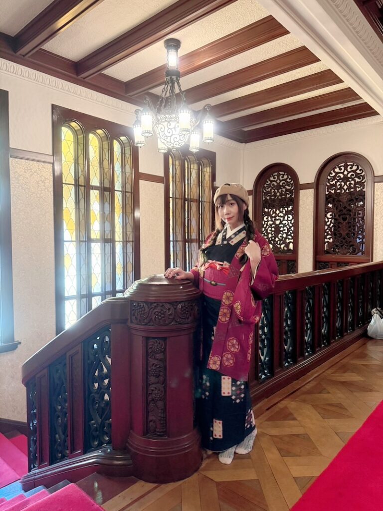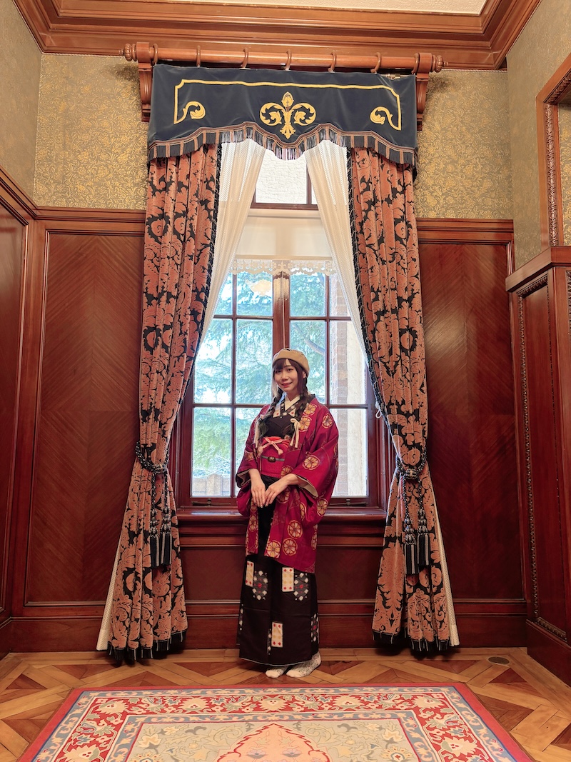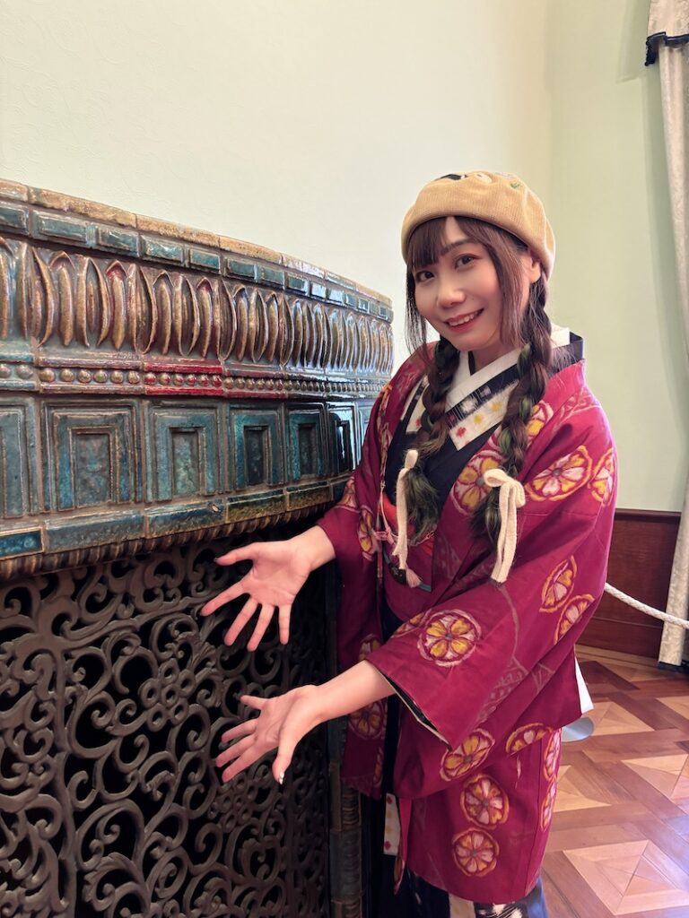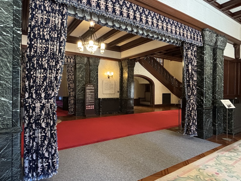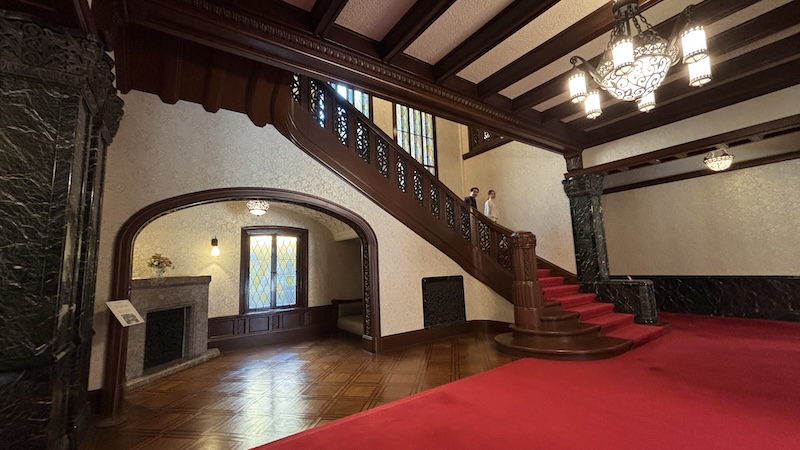 室內保存完整的貴族生活空間,有刻意隱藏前田家家紋「加賀梅鉢」的英式壁爐、流紋大理石角落、浮誇的水晶吊燈及木質護牆,連當年的升降餐梯、暖氣管道都保留了。