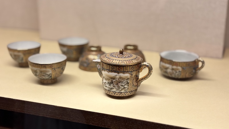 作為文化財,舊前田家本邸固然保留昔日華族生活原本風貌,館內書架、玻璃櫃內陳列不少與「金沢」、「加賀」有關的物品。例如精裝大冊《金沢市史》,以及以華麗精緻聞名世界的九谷燒置物,提醒遊人前田家可是出身富庶的金沢名門啊。