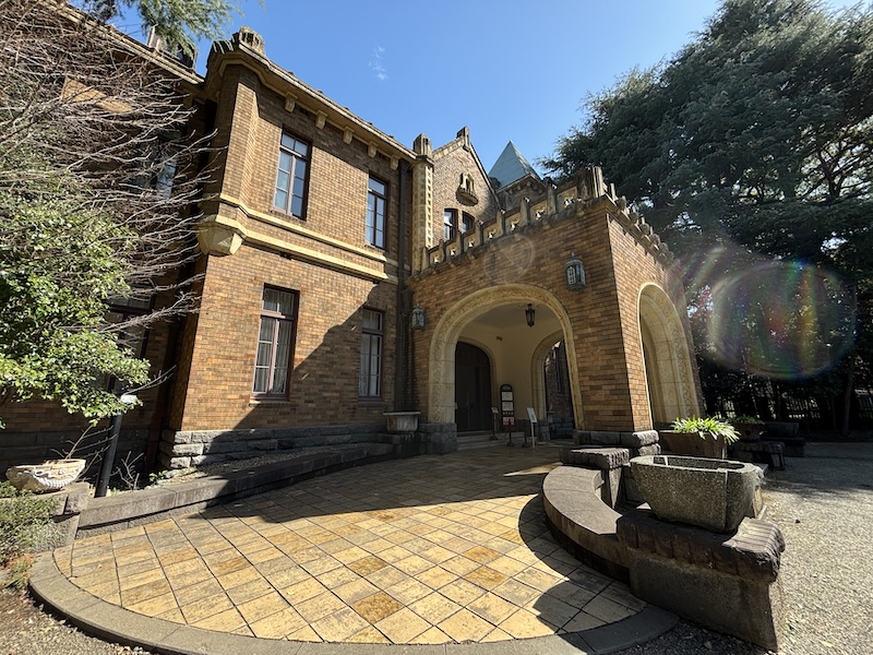 洋館是英國都鐸式建築,踏入大門彷彿置身英國貴族邸宅,窺探當年華族盛世日常:淺茶色瓷磚牆、突出的車道門廊、尖頂塔樓、南側陽臺有翼獅像。