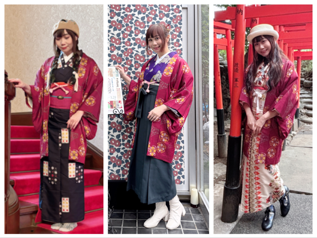 就這樣又過了幾年,心愛的銘仙一直在衣櫃裡靜待時機。直到2026年3月,東京根津彌生美術館舉辦女袴展,我決定帶著家裡最合身的幾套銘仙前往東京,每天完整著裝四處走訪。