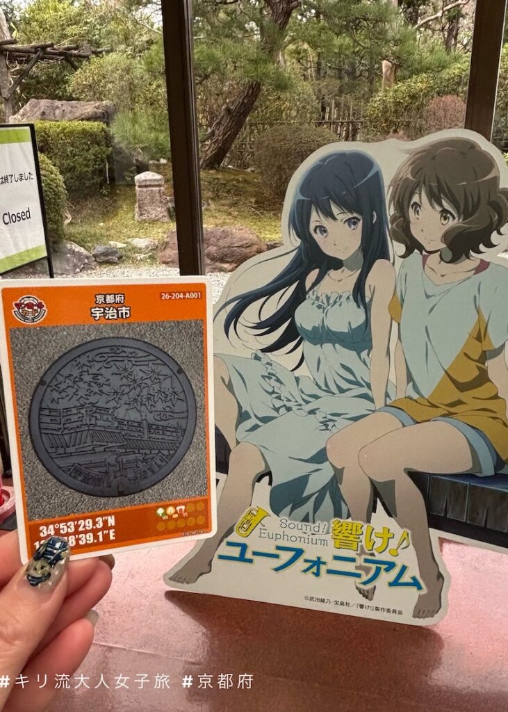 從JR宇治站步行至平等院期間,我在宇治川旁的宇治市観光センター領取渠蓋卡,意外遇見《京吹》的展示,當中有原作者武田綾乃的簽名。