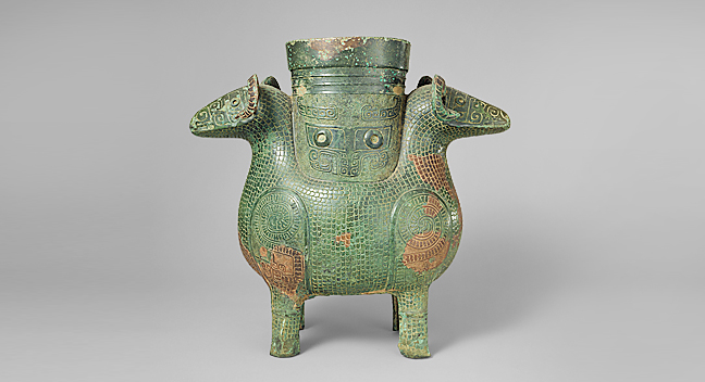 館內鎮館之寶,正是門票上的中國商代晚期雙羊尊(亦稱雙羊頭瓶),世間僅存兩件同形制重器,另一件現藏大英博物館。這件雙羊尊曾為清宮舊藏,流傳史頗為曲折:大英博物館那件於1860年英法聯軍焚燒圓明園時被掠出,輾轉後1936年入藏英館;根津這件於清末民初經日本山中商會等渠道流出,後被鐵道實業家、東武鐵道核心經營者根津嘉一郎重金購入。