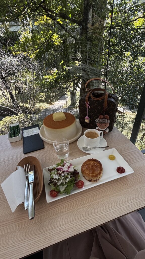 這間園林玻璃Cafe適合單人前往,靠窗單人位抬眼即滿目蔥綠。館方對此處有明確拍攝規範:嚴禁拍攝人像,拍攝風景會被溫柔勸阻,僅可簡單記錄餐點。這樣的規則是為守護整體觀展與休憩體驗,加之憑票入場的門檻,讓這裡少了喧囂,前來者多是真心感受庭園風光、享受寧靜的客人。