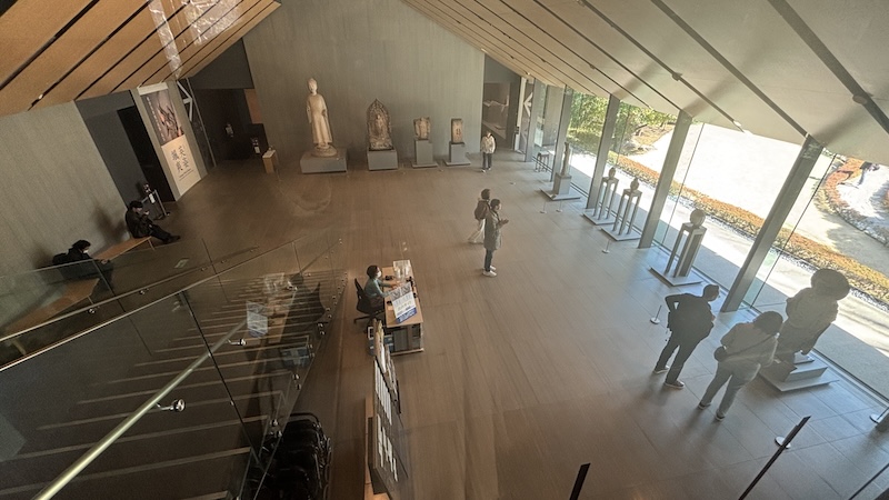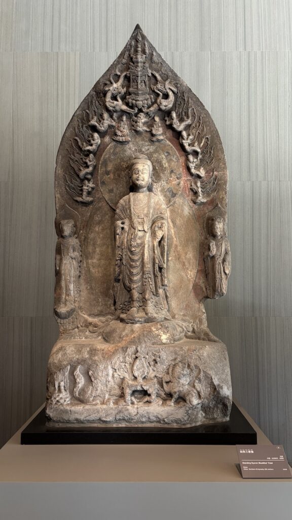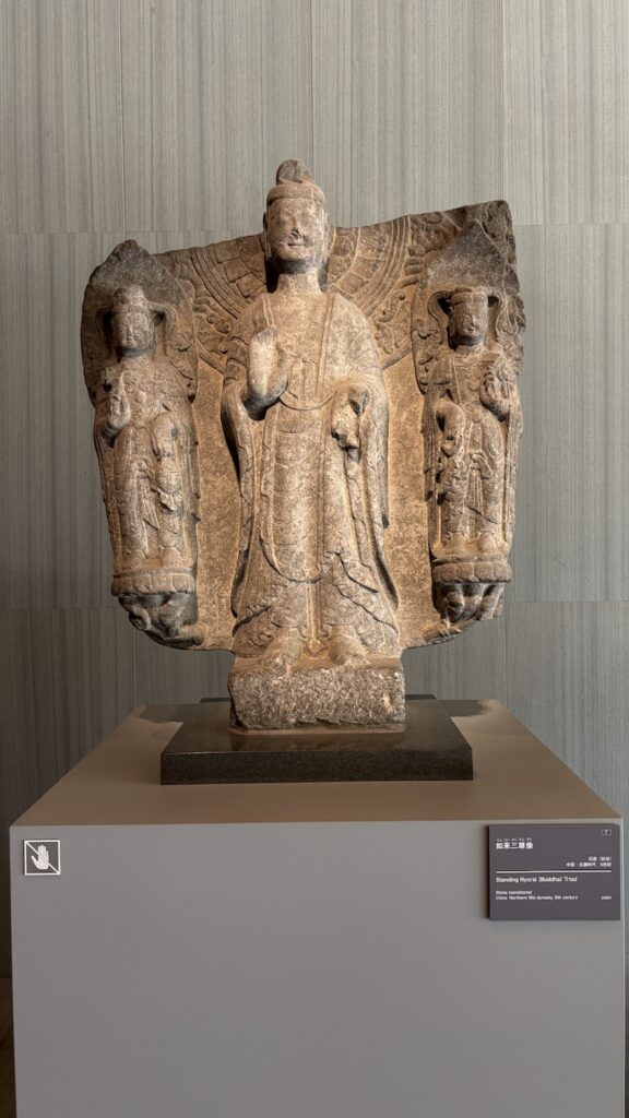 走進館內,一樓大堂是全館唯一允許拍照的區域。這裡陳列多座中國北齊、北周時代的石刻佛像,石質雖經歲月風化,衣褶與面相仍清晰莊嚴,站於其間,肅然起敬的神聖感油然而生。