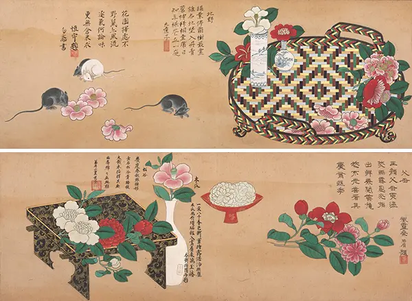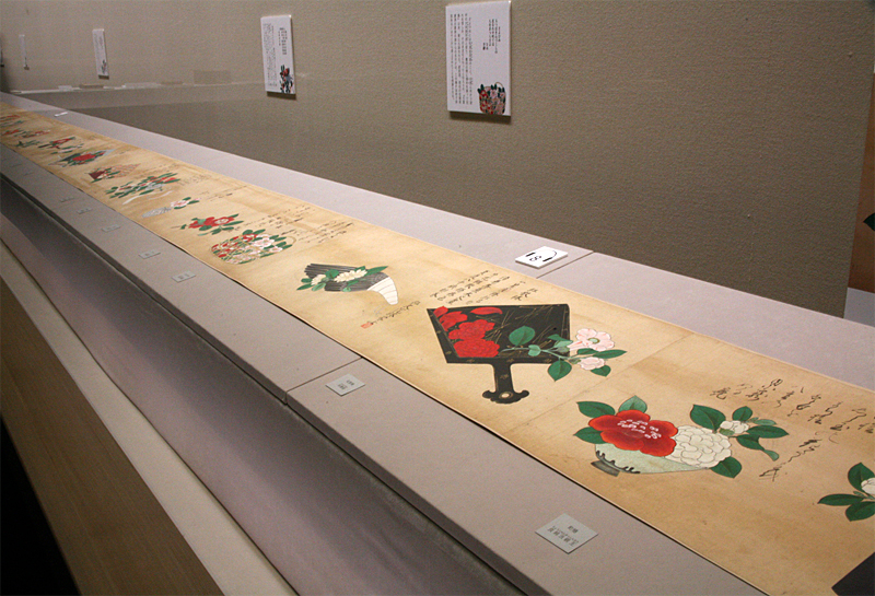 二樓的書畫與工藝品展區同樣精彩,卻嚴禁拍攝,我僅能憑記憶記下重點:江戶前期的《百椿圖》長卷,繪有桃椿、赤山茶花、八千春,卷上有林羅山、李梅溪、林鳳岡題字;另有德川光國、良尚法親王的墨蹟,敦賀、三井寺、難波的風景繪,以及單幅山茶花、牡丹圖。二樓還陳列幾件18世紀英國製清宮御藏西洋座鐘,機芯精密、鎏金飾紋精美,無法留下影像,僅能將細節記於心中。