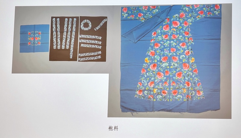 故宮博物院所藏現今總登記號為「資織匣478」衣料盒的蓋子上刻有「上用旗袍」四字,在此盒上留有「故23843」文物總登記號的標籤,可知盒子內原先存放有總登記號為「23843」的另一件文物。此文物在故宮博物院《藏品總登記帳》上名稱為「月白色緙絲淺彩海棠蝶紋氅衣料」,可知這是一件半成品狀態的氅衣。