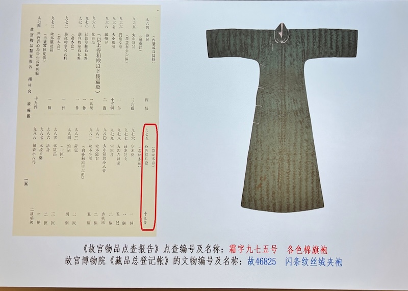 根據圖片可知,圖片中這些在《故宮物品點查報告》中被登記為「旗袍」者,皆是屬於清代女性便服中的襯衣及氅衣。