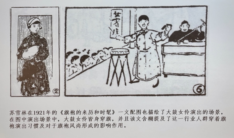 旗袍1919年在上海風行起來後不及數月,便有報紙提到京調大鼓女伶對於此風氣的推動作用。1920年4月18日,《晶報》上的一篇名為《女子旗袍之蠡測》的文章提到: