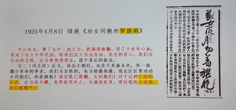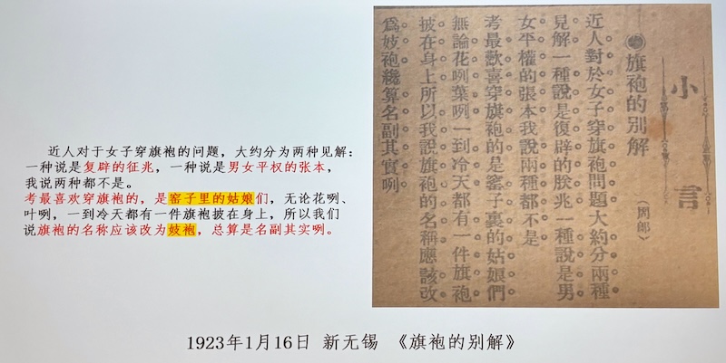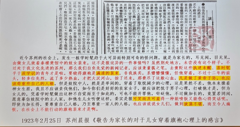 1923年2月25日 蘇州晨報《敬告為家長的對於兒女穿著旗袍心理上的感言》:
