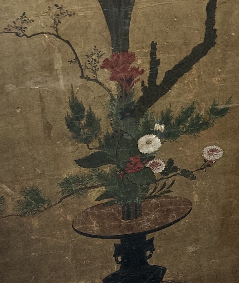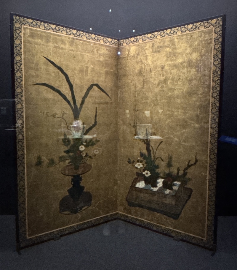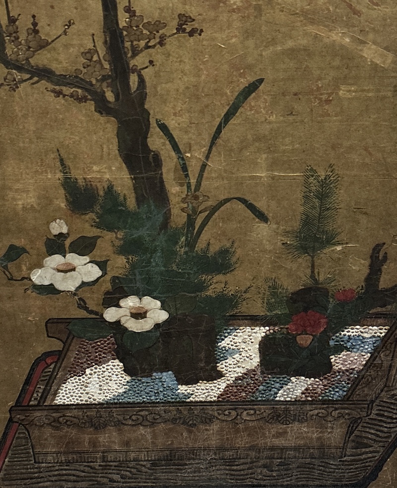 日本的金漆屏風上就有菊花、梅花、樁花與盆景中砌成枯山水的小石子。金色讓人想起加賀百萬石大名,也想起輝煌的琳派藝術。